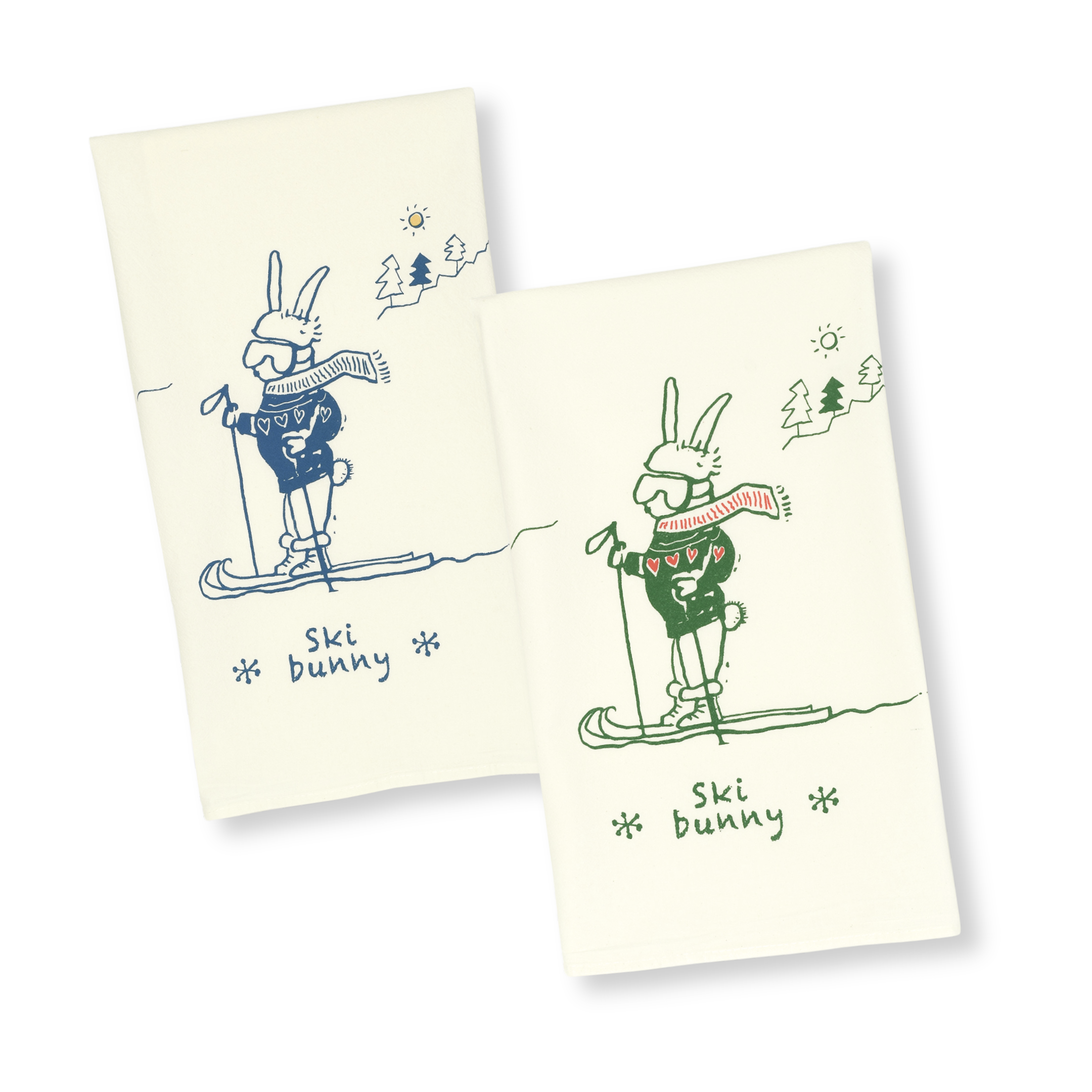 ski bunny tea towel, green