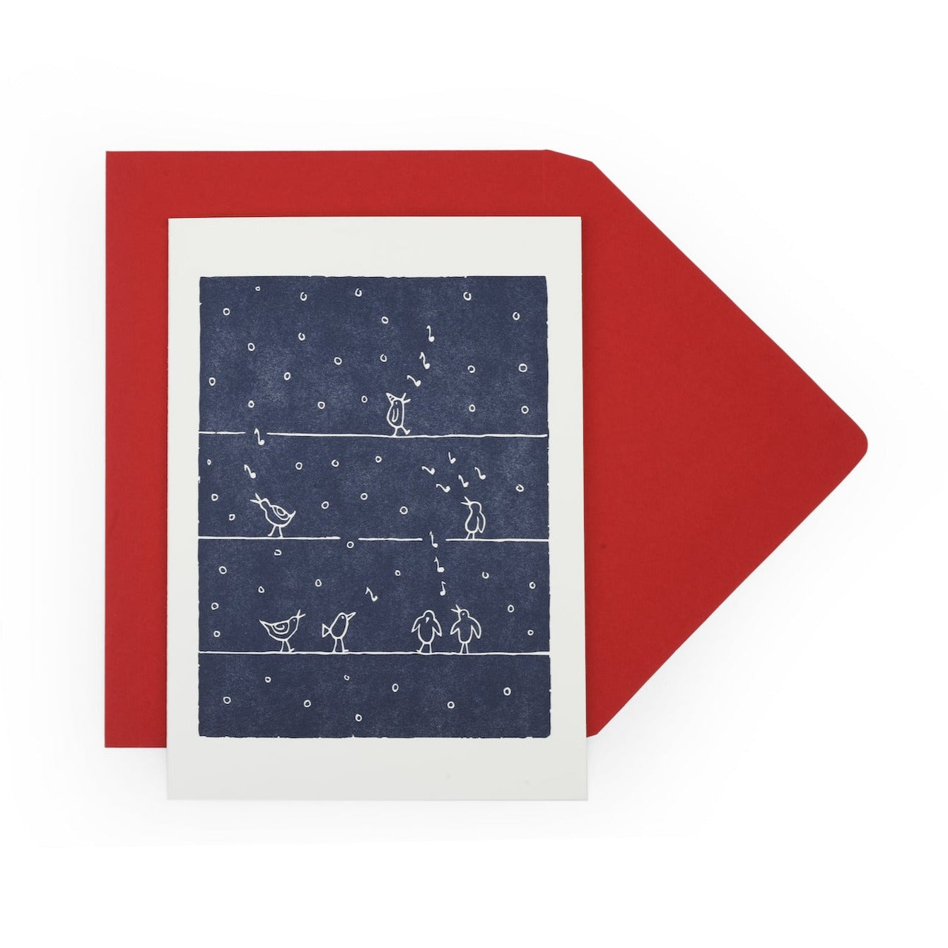 the littlest birds sing the prettiest songs. a series of chirping birds printed on a folding card. available individually or in packs of five. comes blank inside and paired with a festive red envelope.