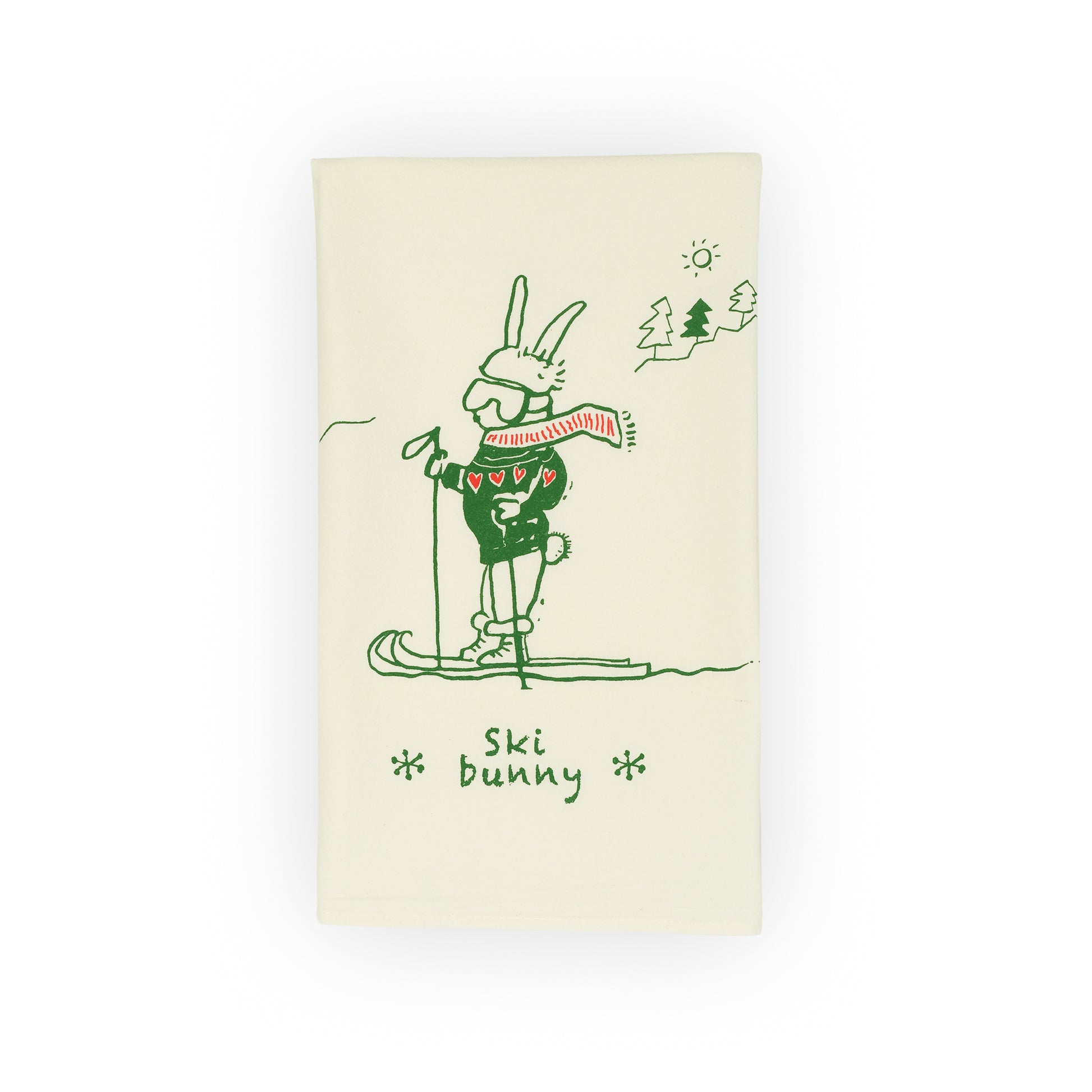 ski bunny tea towel, green