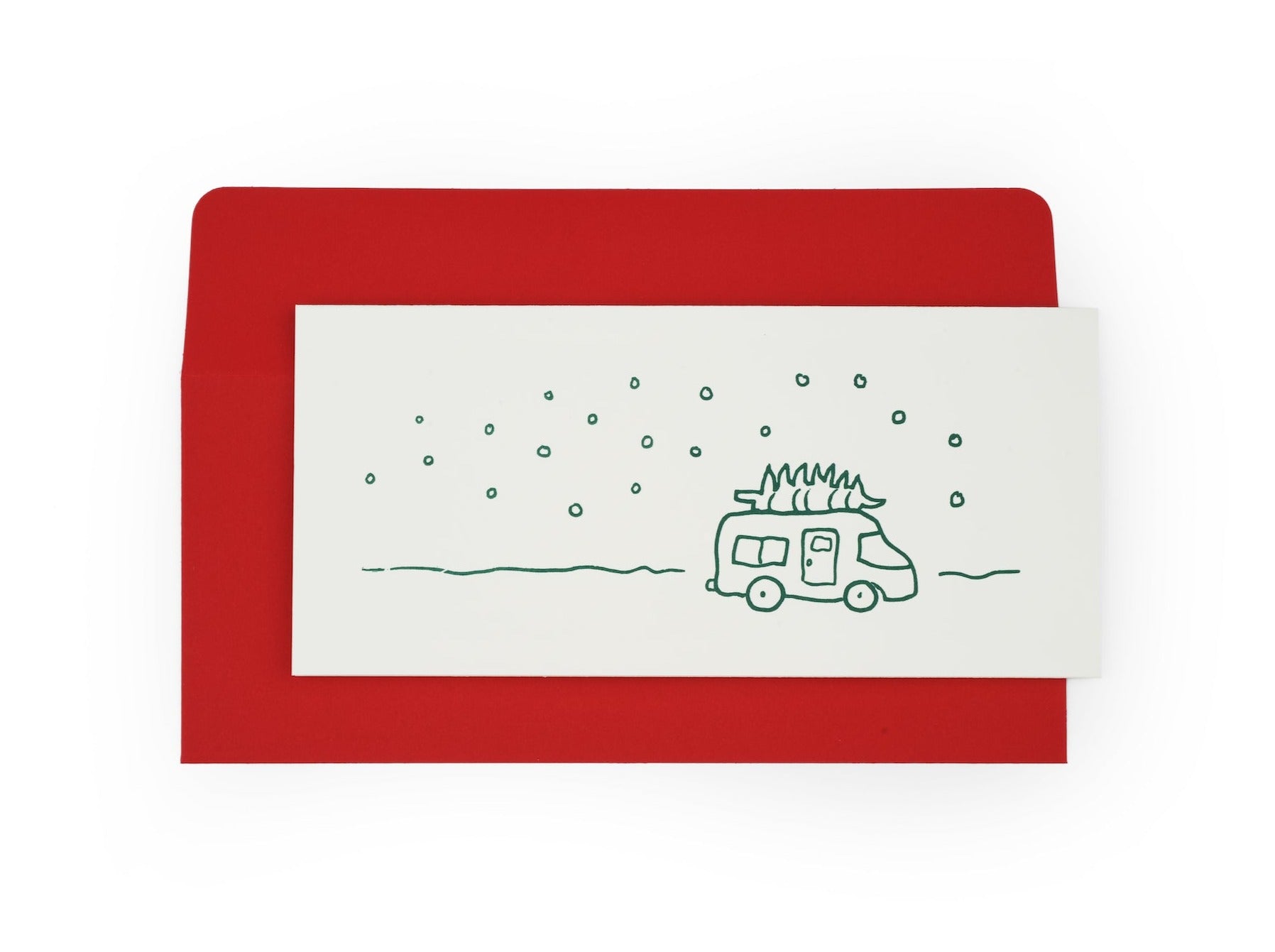 over the river and through the woods. letter pressed on an extra long folding card. available individually and in packs of five. comes blank inside and paired with a festive red envelope.